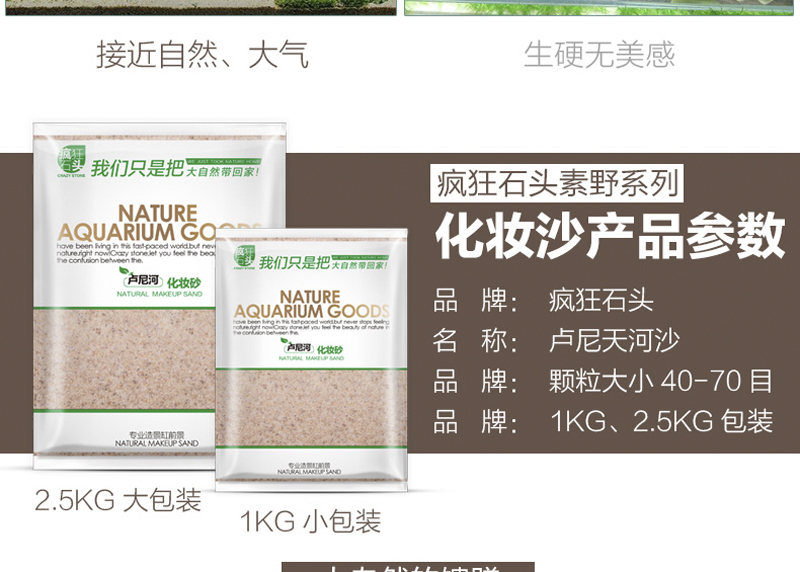 简介:经过高压清洗,可直接使用不浑水,天然河沙,颗粒饱满,有光泽,色系温和,造景装饰百搭。