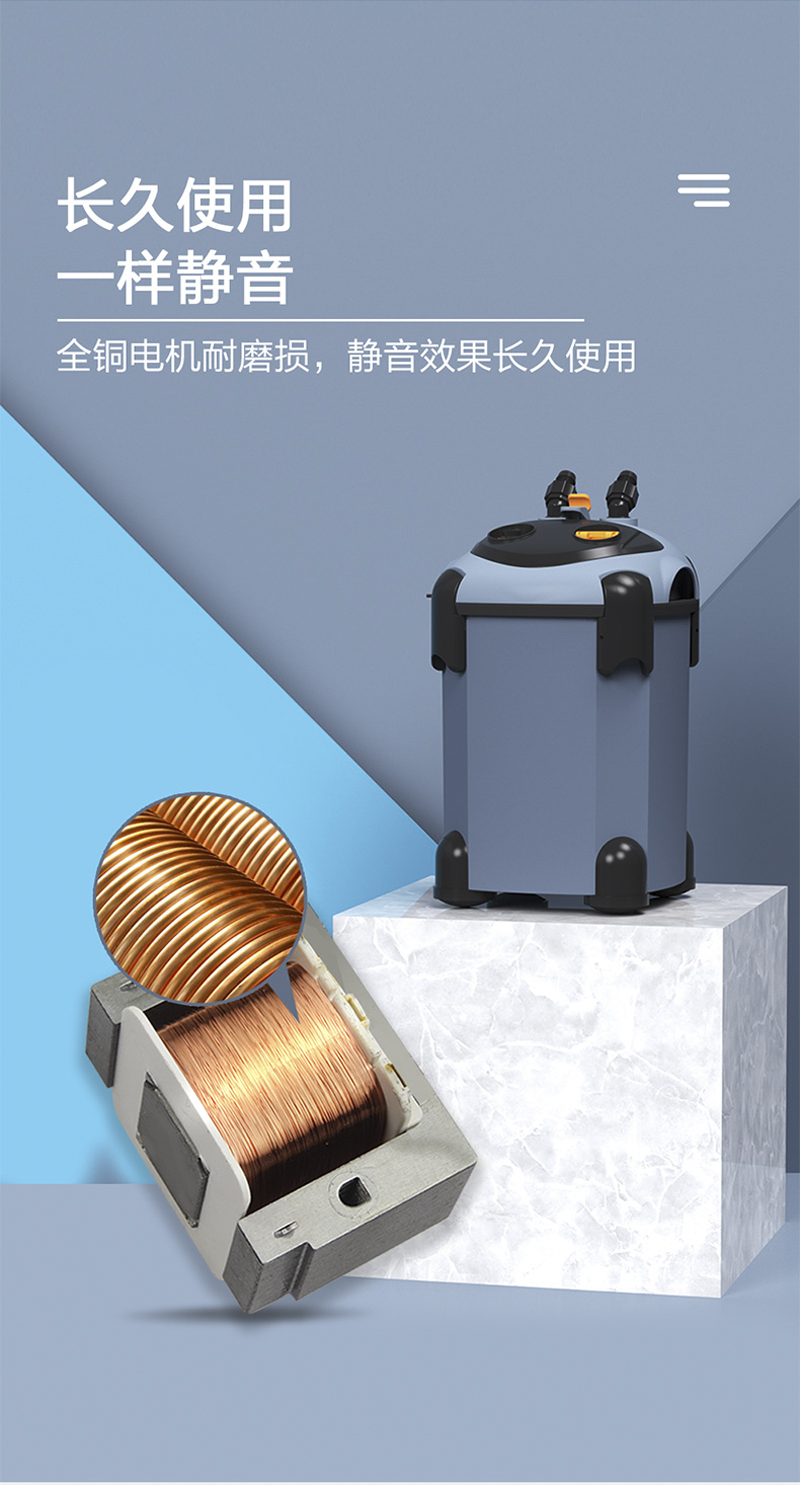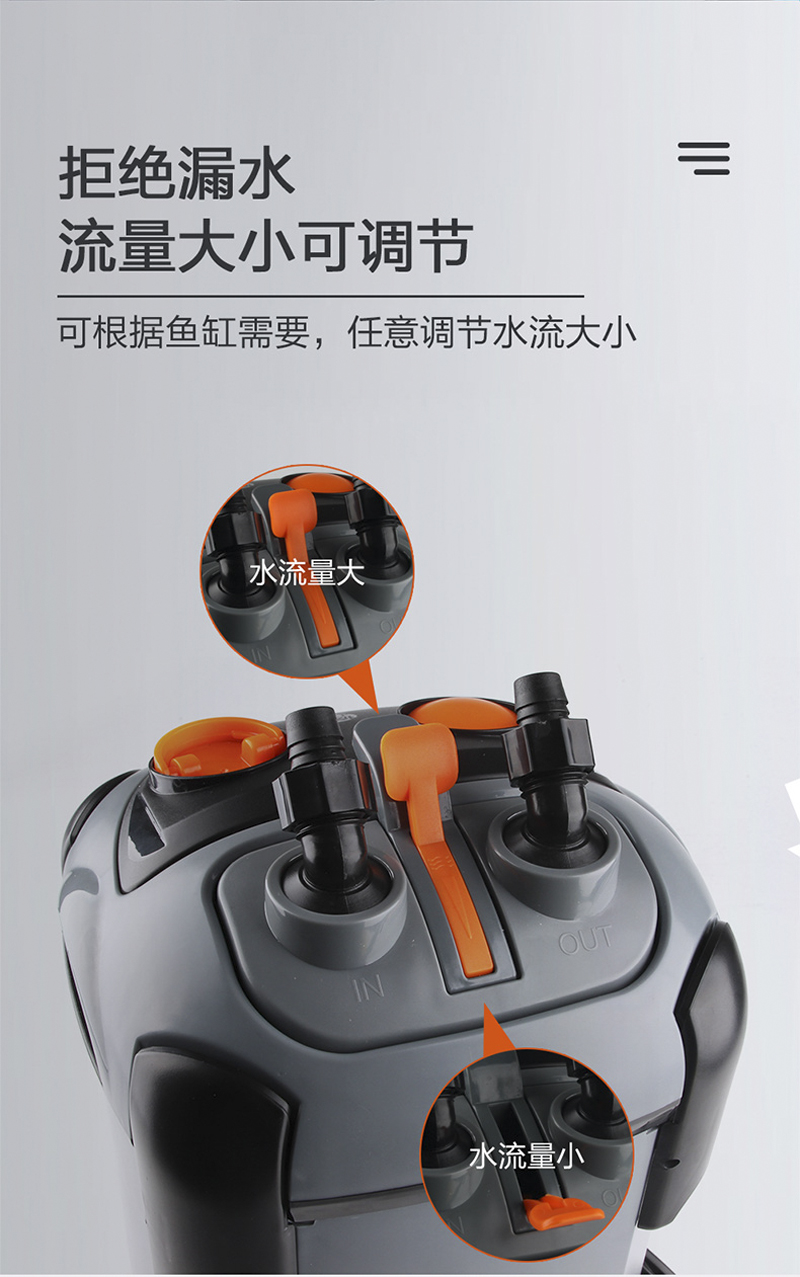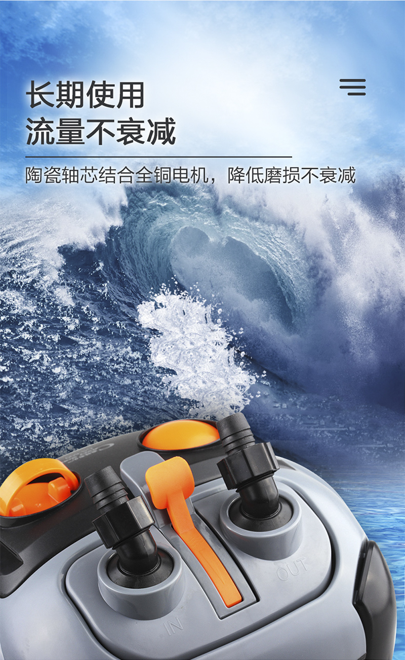 说明:采用低损耗,高科技的微型电机配合永磁转子,低噪音高效能磁力长久不消失超强磁力动力更强劲,永不磨损陶瓷轴芯。利用空气压缩原理,不用往桶里灌水,轻轻一拉即可出水独特的流量调节方式,根据鱼缸大小调到合适的流量。