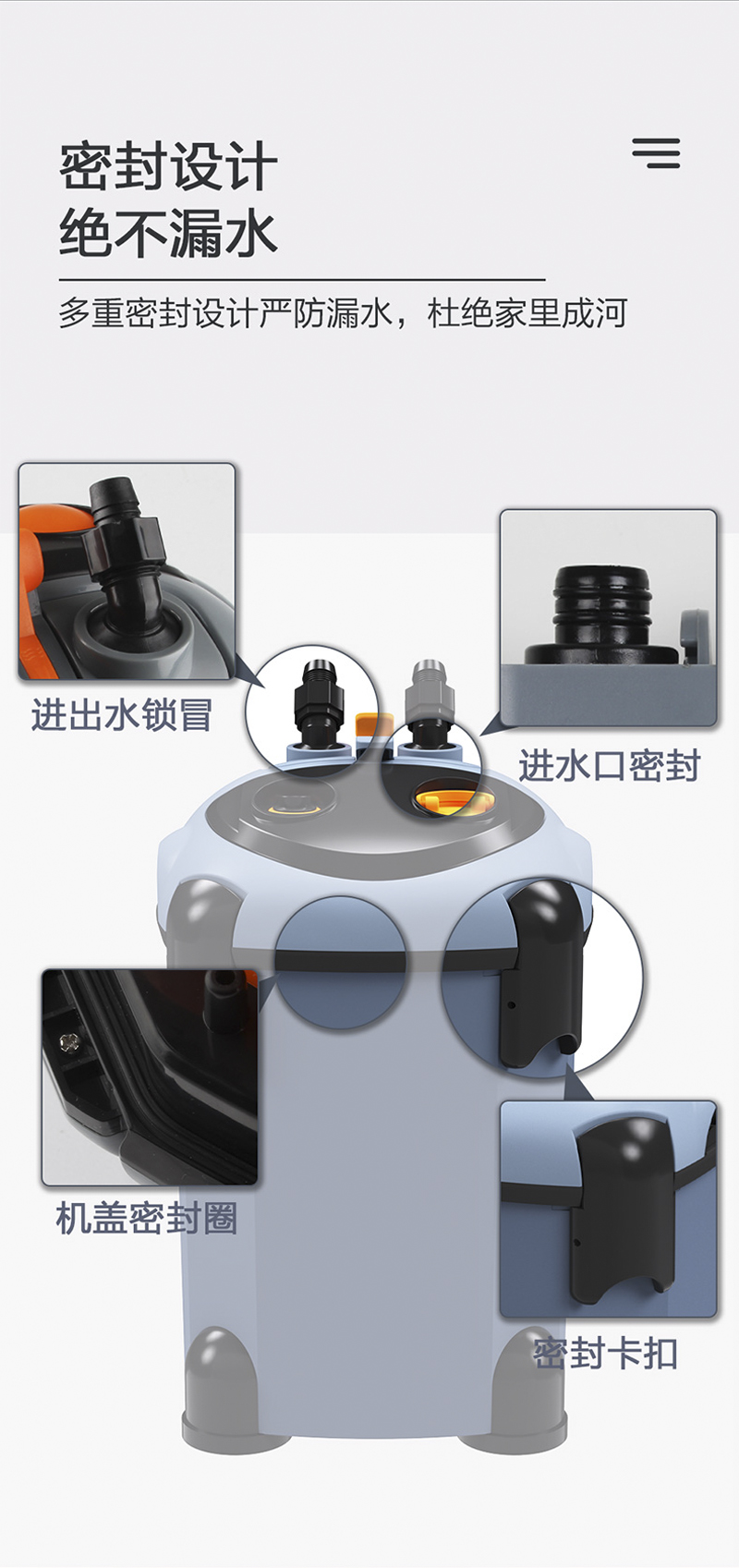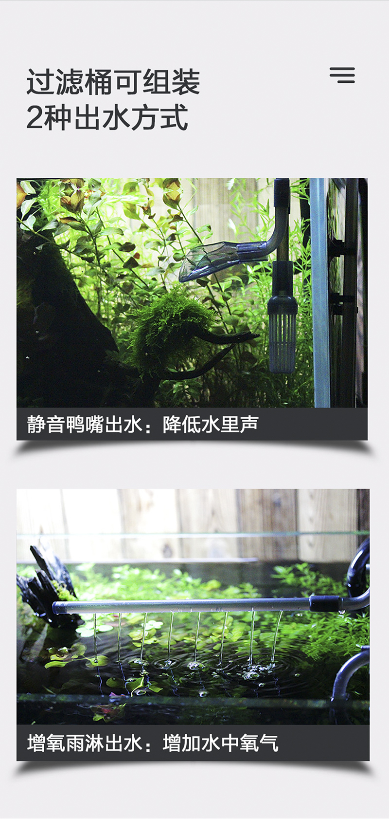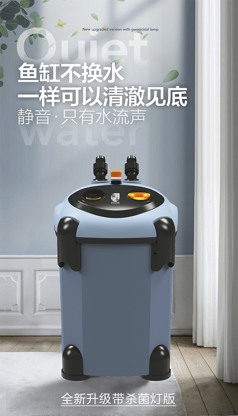 说明:采用低损耗,高科技的微型电机配合永磁转子,低噪音高效能磁力长久不消失超强磁力动力更强劲,永不磨损陶瓷轴芯。利用空气压缩原理,不用往桶里灌水,轻轻一拉即可出水独特的流量调节方式,根据鱼缸大小调到合适的流量。