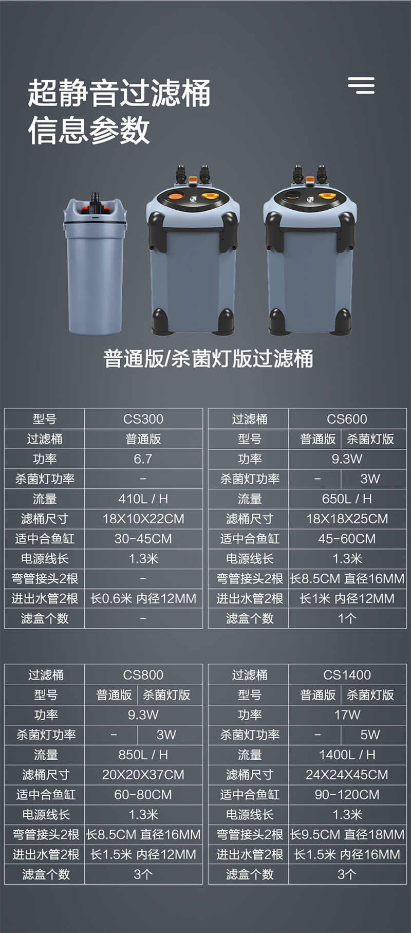 CS-800(适用于60-80cm鱼缸) CS-1400(适用于100-150cm鱼缸)
