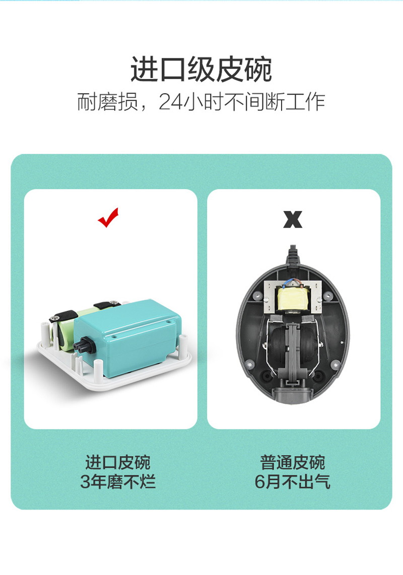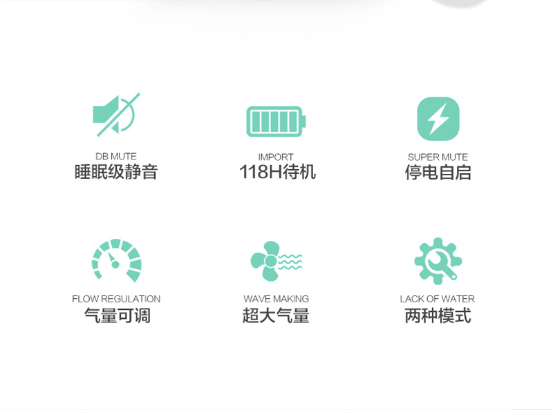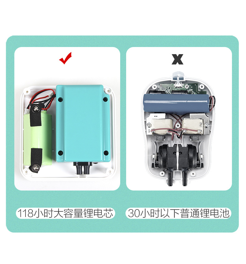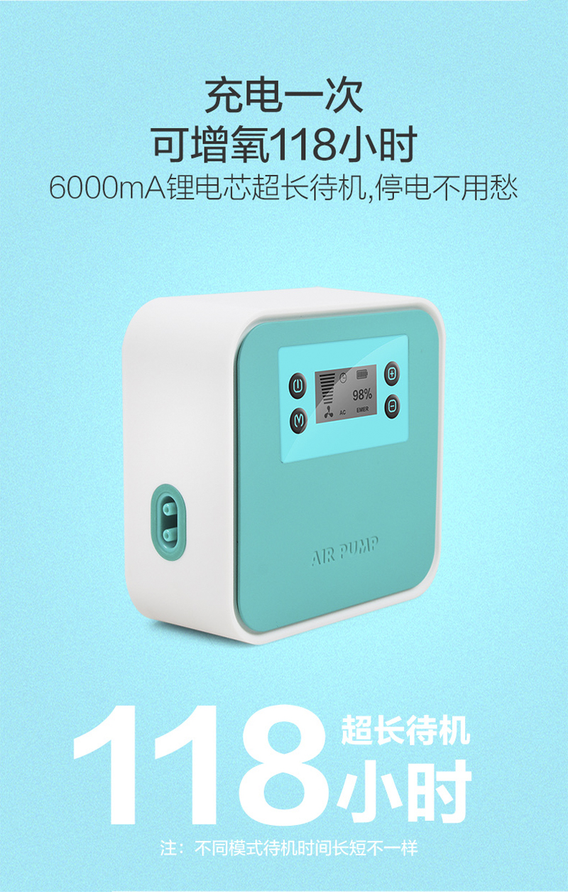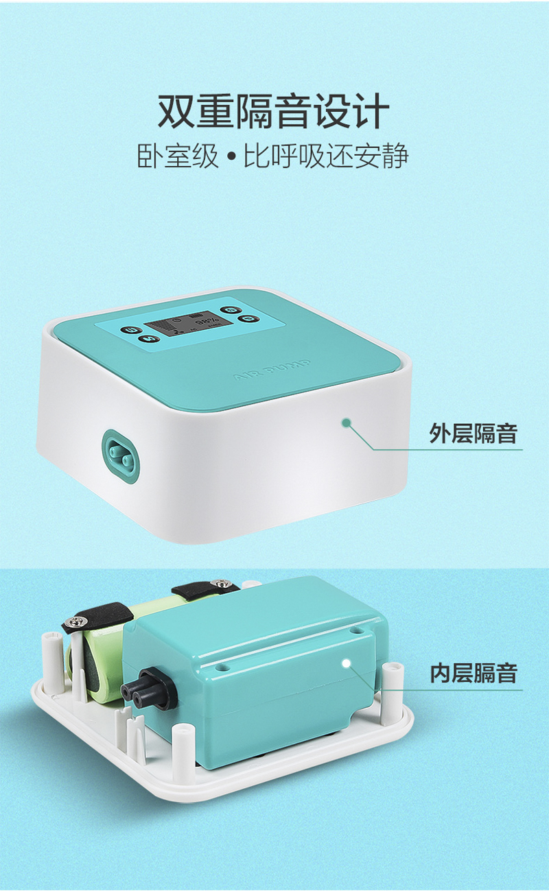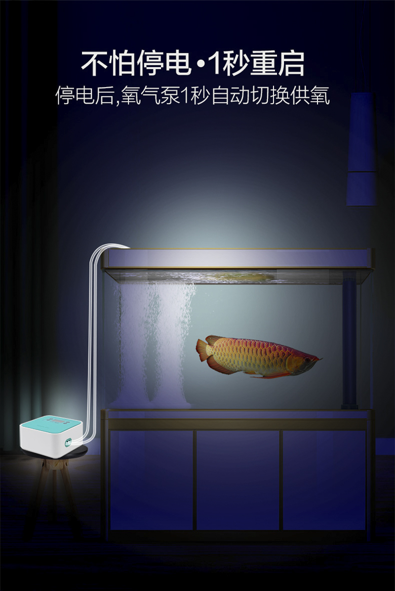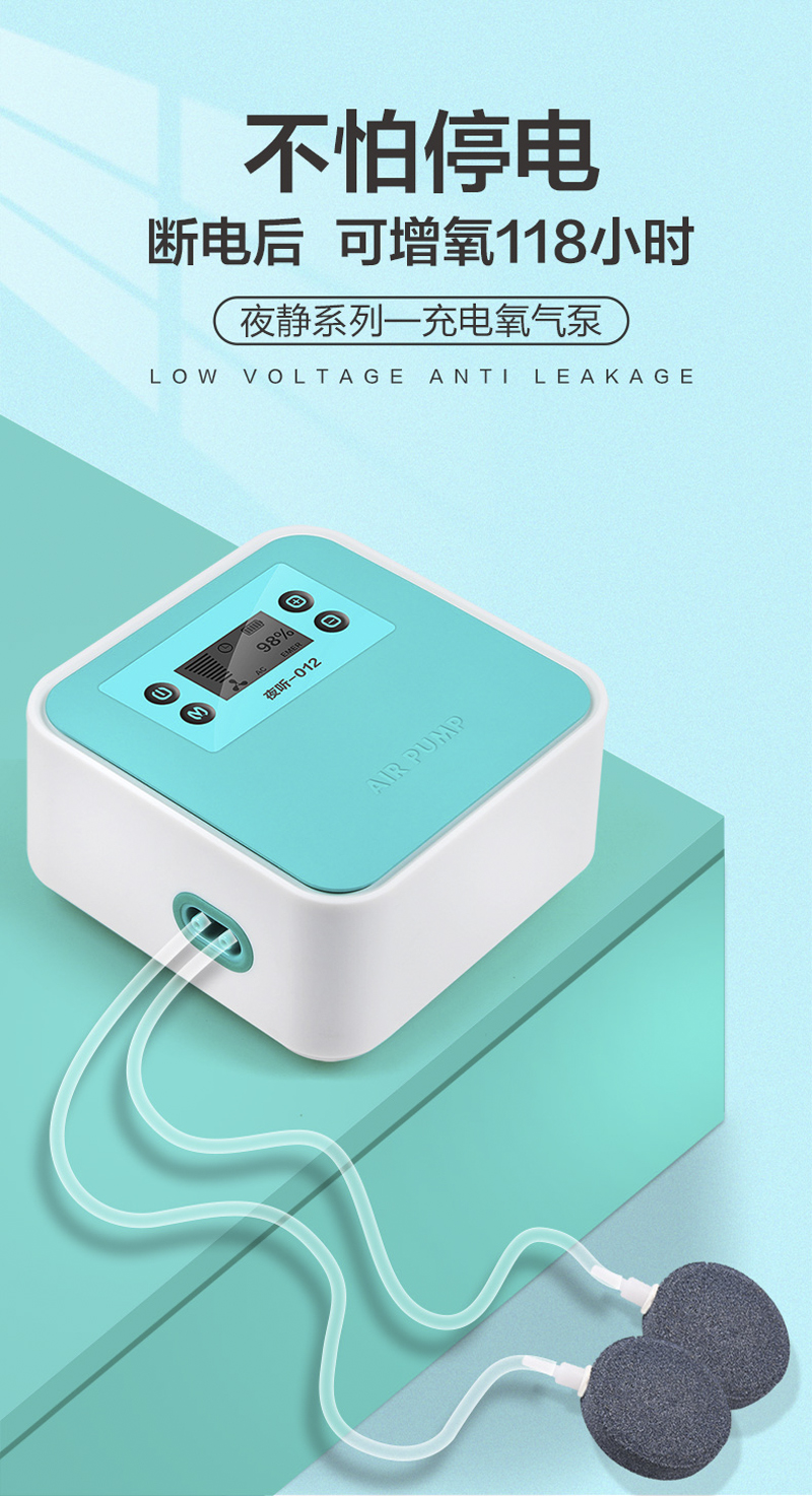 包含:不怕断电,断电后可增氧118小时,超级静音,双重隔音,大气量输出,任意调气量,全铜芯电机,长久使用,气量不衰减