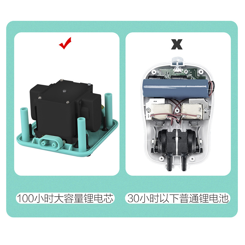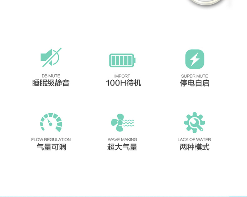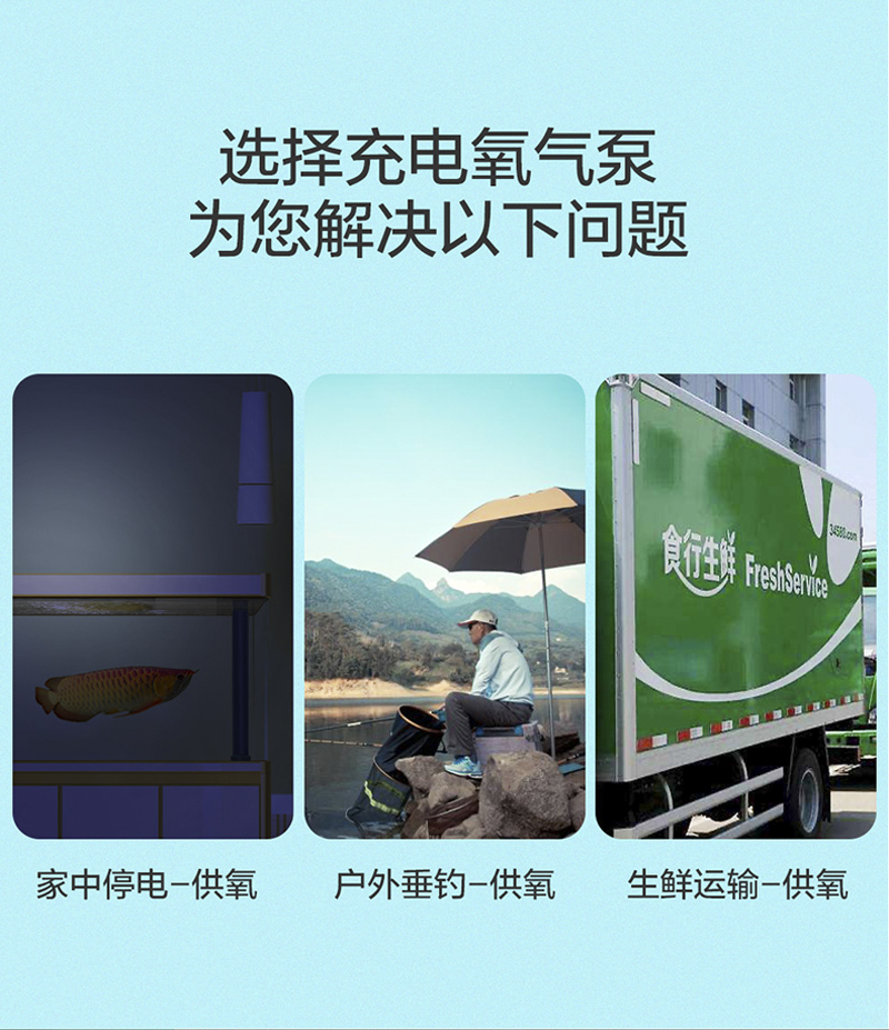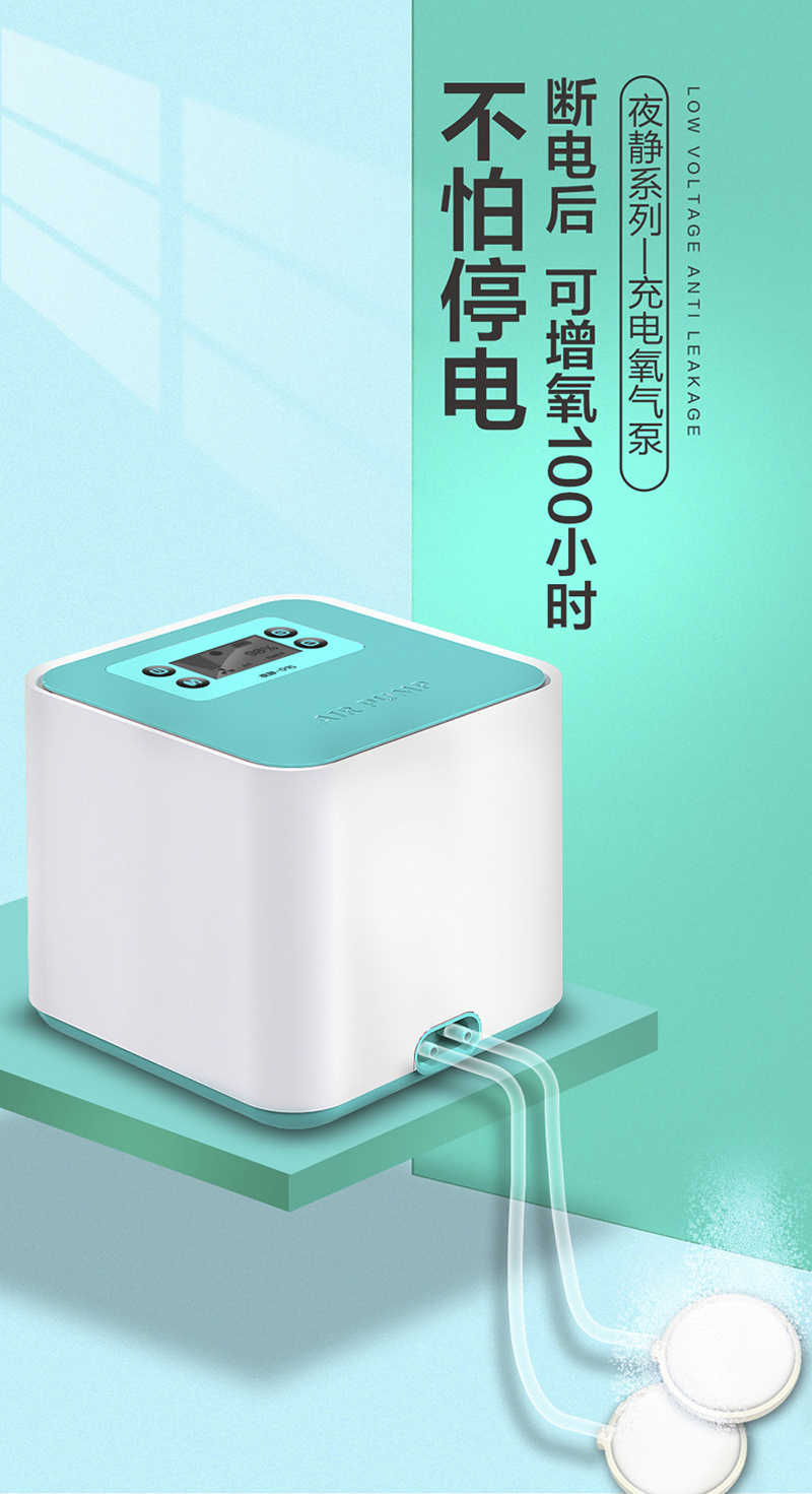 包含:不怕断电,断电后可增氧100小时,超级静音,双重隔音,大气量输出,任意调气量,全铜芯电机,长久使用,气量不衰减