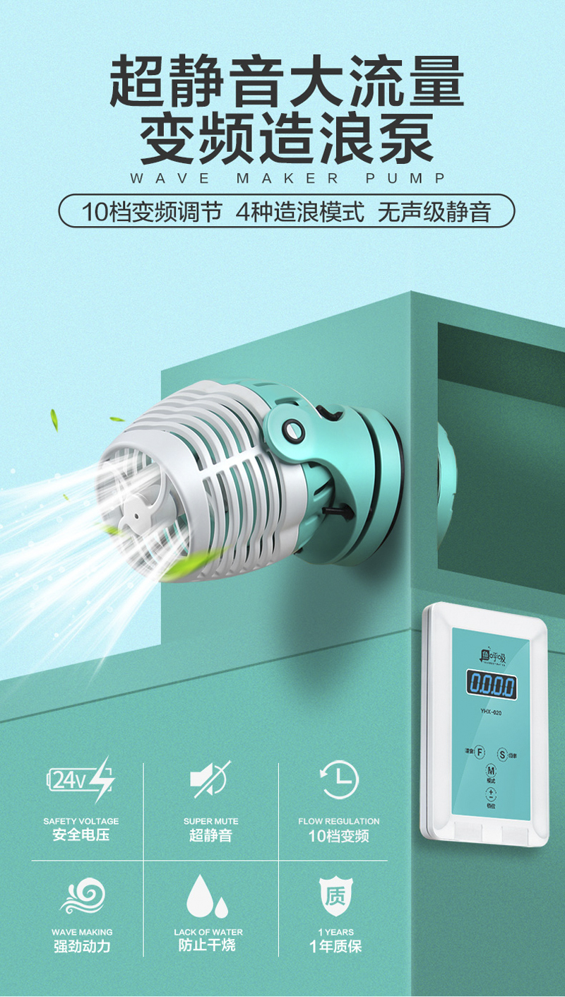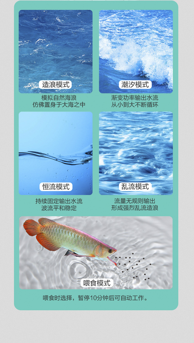 包含:超静音 大流量 变频造浪泵,10档变频调节,4种造浪模式,无声级超静音