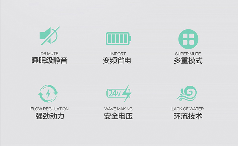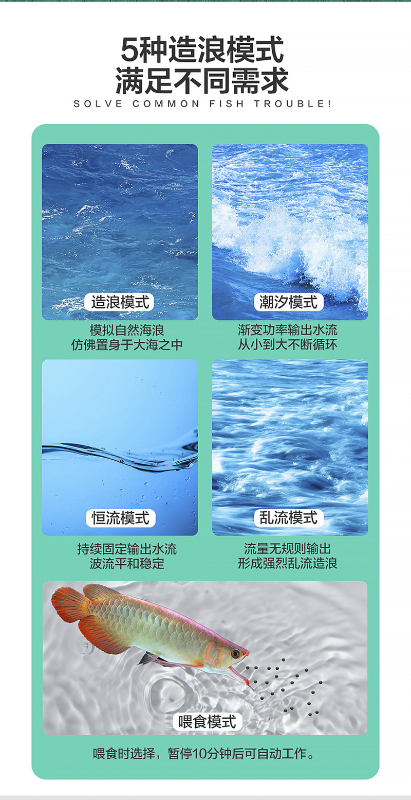 包含:超静音 大流量 变频造浪泵,10档变频调节,4种造浪模式,无声级超静音